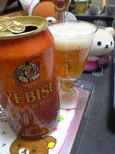 今日は贅沢にエビスの2009年限定醸造生ビール(麦芽100%)をばv