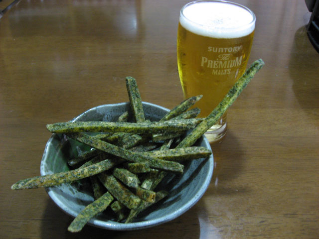 四万十の川海苔はとてつもなく美味しいのですが、芋ケンピにつけると海苔の味のほうが勝つ感じがしました。所詮バブリーな取り合わせか・・・(汗)。せっかくのいい芋が惜しかったです。