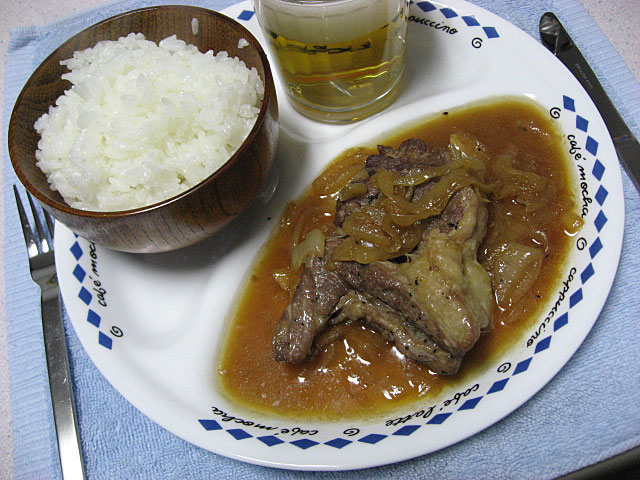 じっくり弱火でコトコト、玉ねぎがとろけるくらいに煮込むようにして焼いたので、ロースの原型を留めていません^^;